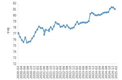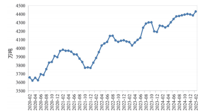 2025年2月,國內電解鋁行業(yè)運行較為平穩(wěn)。2月國內電解鋁建成產能4467萬噸/年,較上月減少5萬噸/年,運行產能4366萬噸/年,較上月增長5萬噸/年。1月份產量預計為339.9萬噸,環(huán)比下降8.7%,同比增長0.8%,日均產量12.14萬噸,環(huán)比小幅增長1.1%。