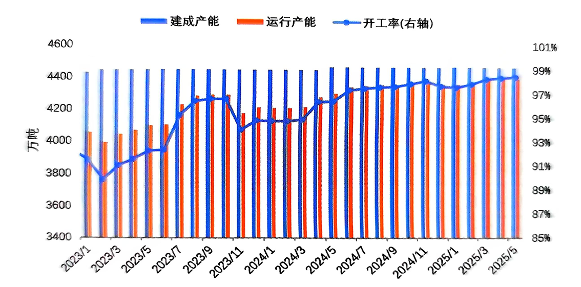 2025年5月,國內(nèi)電解鋁生產(chǎn)能力穩(wěn)中有增,截至5月底建成產(chǎn)能4467萬噸/年,運(yùn)行產(chǎn)能4397萬噸/年,環(huán)比增加4萬噸/年。本月運(yùn)行產(chǎn)能增量主要來自青海等新增項(xiàng)目的釋放;云南等部分地區(qū)新建項(xiàng)目持續(xù)投產(chǎn),但產(chǎn)能指標(biāo)均來自在產(chǎn)產(chǎn)能的置換,部分省份的產(chǎn)能和產(chǎn)量將會(huì)受到影響,但整體生產(chǎn)能力理論上不會(huì)因此而發(fā)生變化。經(jīng)調(diào)整,4月份產(chǎn)量為362.4萬噸;預(yù)計(jì)5月份產(chǎn)量為374.6萬噸,同比增長2.5%,日均產(chǎn)量12.08萬噸,與上個(gè)月基本持平。